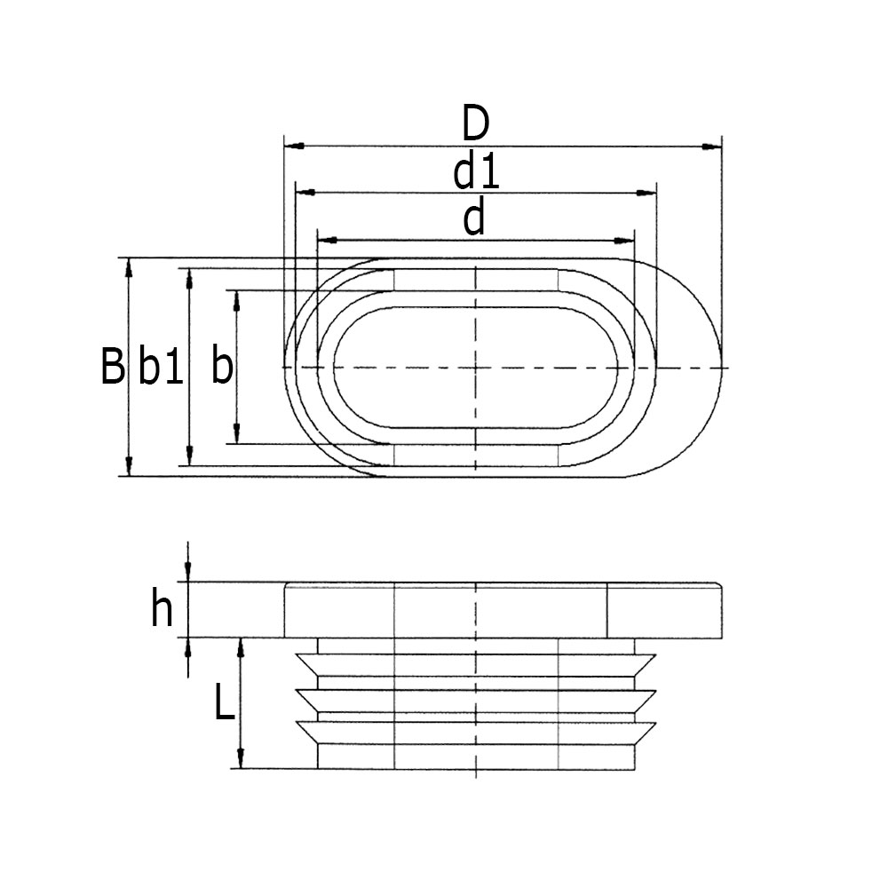 LegendB x D=head dimensions, b x d=shaft dimensions, b1 x d1=ribbing dimensions, h=head thickness, L=shaft length, Version=tube wall thickness, Tube size=external tube dimension