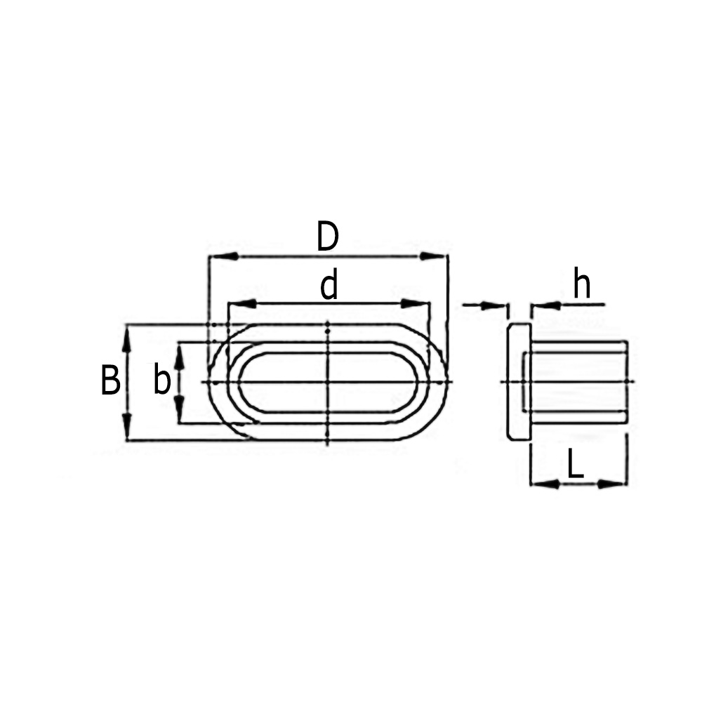 - Flat end cap inserts for flat oval tube are available for internal tube sizes from 35 x 18 mm to 45 x 18 mm inclusive