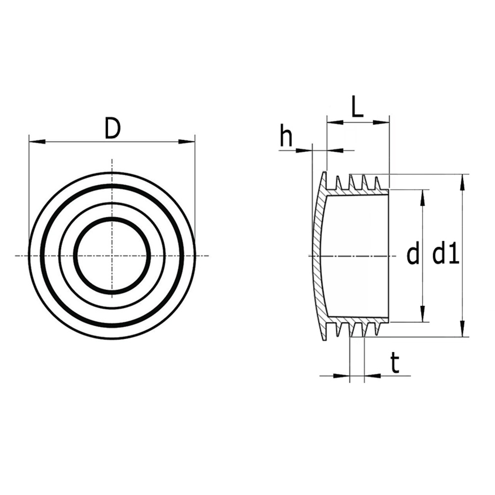 End cap inserts without ribbing - heavy-duty quality - for round tube