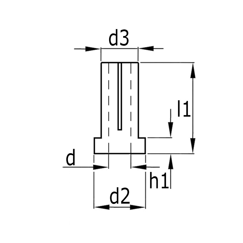 d=Ø-bore, d2=collar-Ø, d3=shaft-Ø, h1=collar height, l1=length