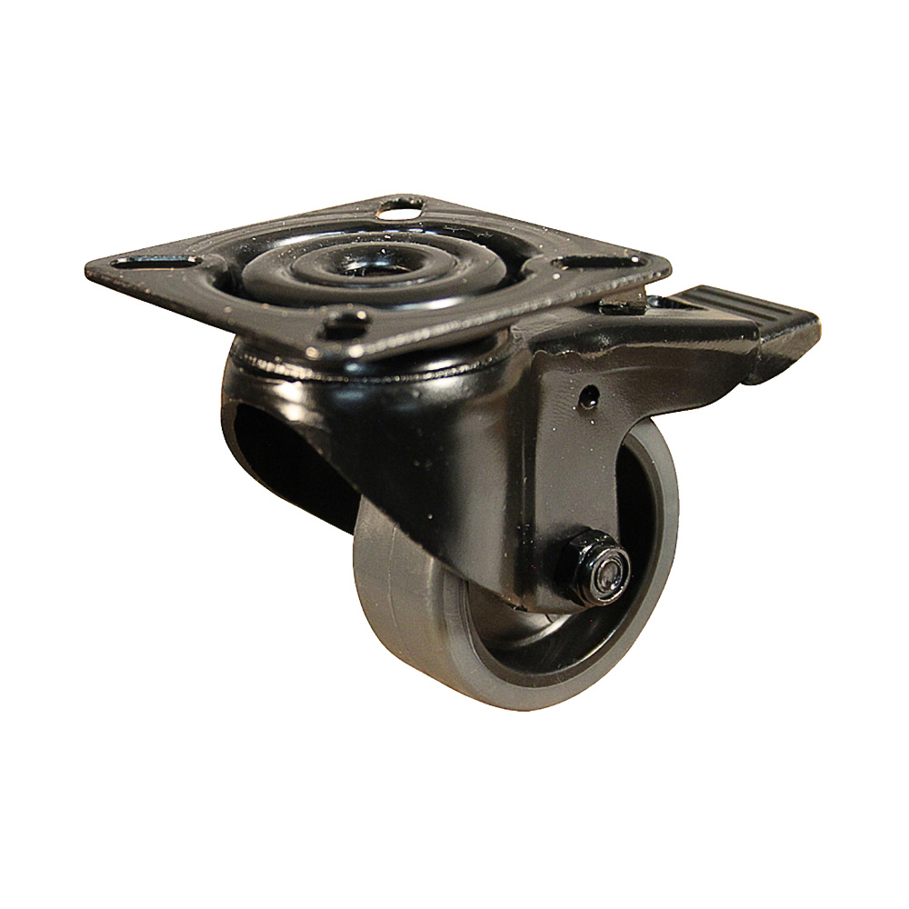 - Black apparatus swivel castors with brake and TPE tyre on a plastic rim are available in wheel sizes from Ø50mm to Ø75mm inclusive