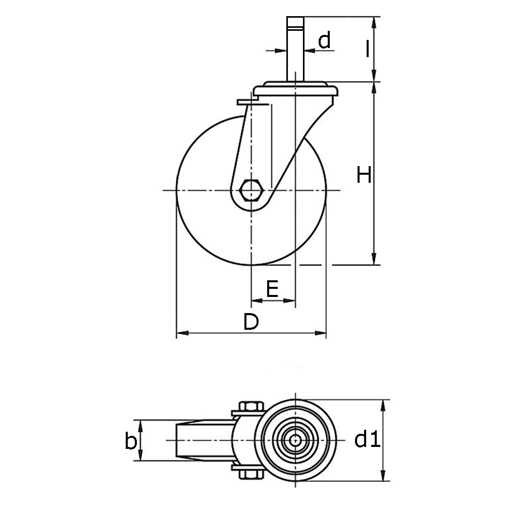 - Apparatus swivel castors with stem fitting and a TPE tyre on a plastic rim are available in wheel sizes from Ø50mm