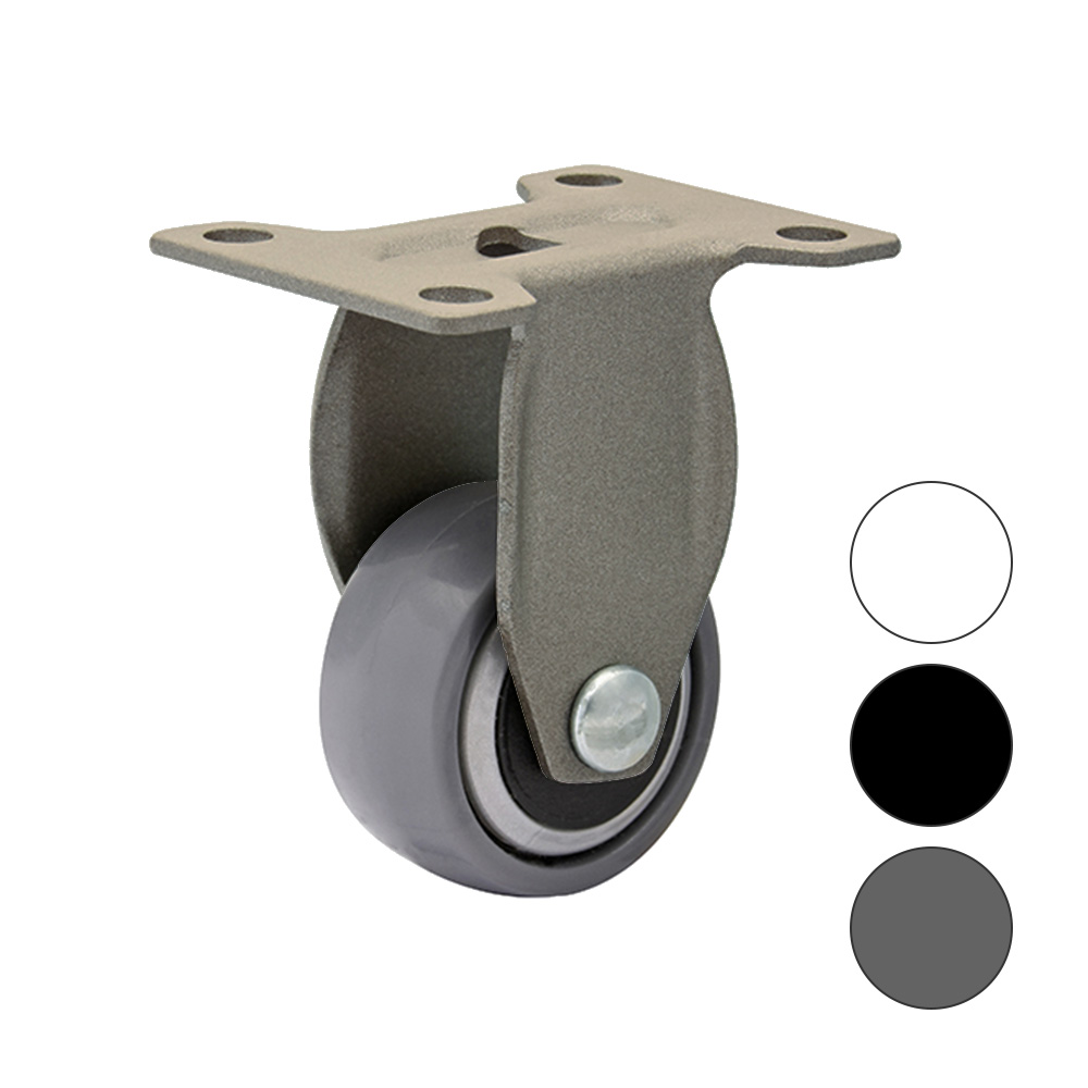Furniture fixed castor Ø50 TPE tread - ball bearing - plate fixing - black