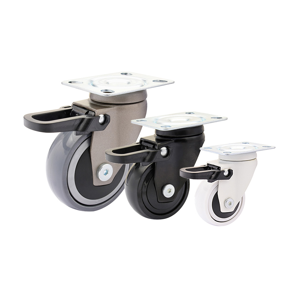Twin wheel furniture castor Ø50 with PU tread - synchrone brake