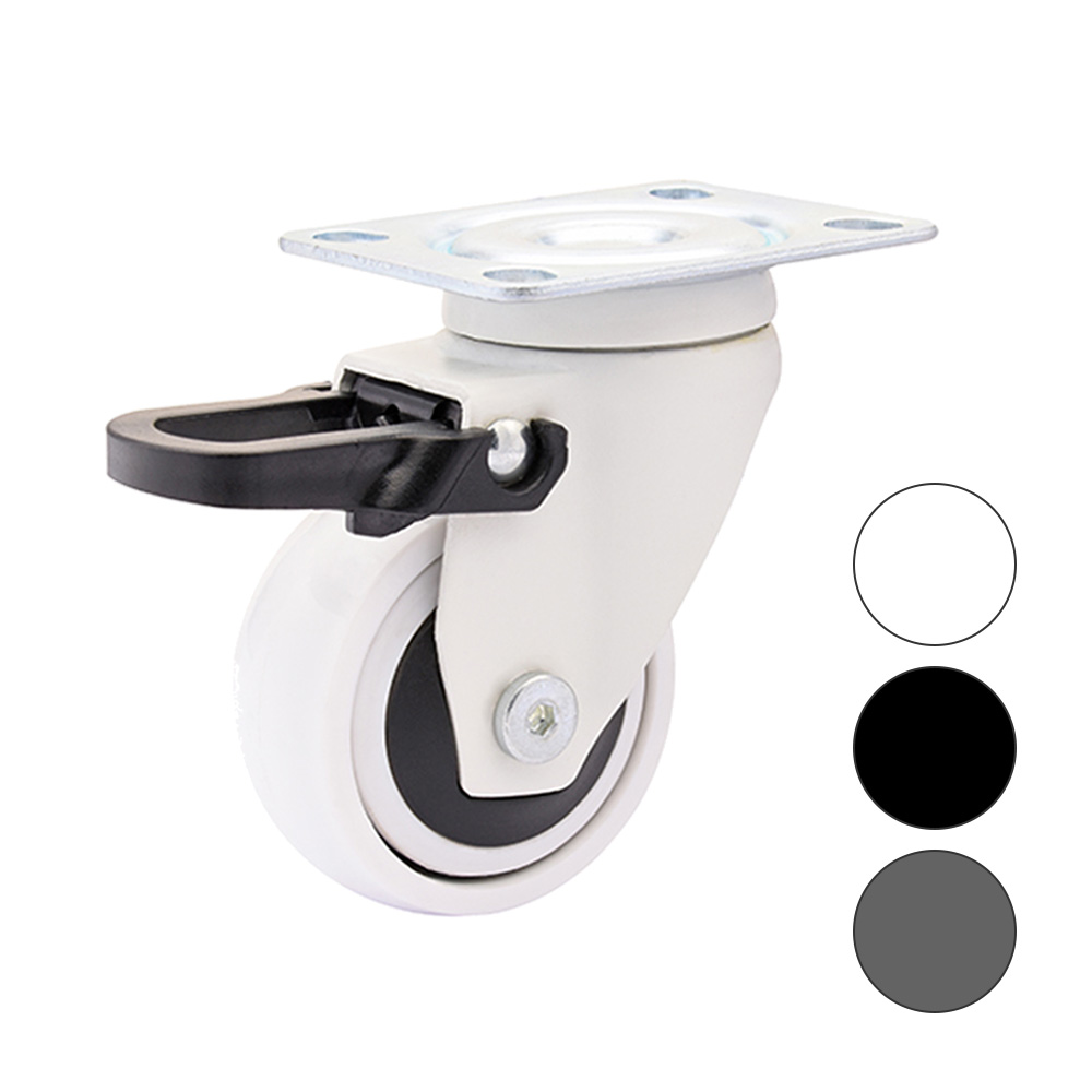 Furniture swivel castor Ø50 TPE tread w/ brake - ball bearing - plate fixing - white