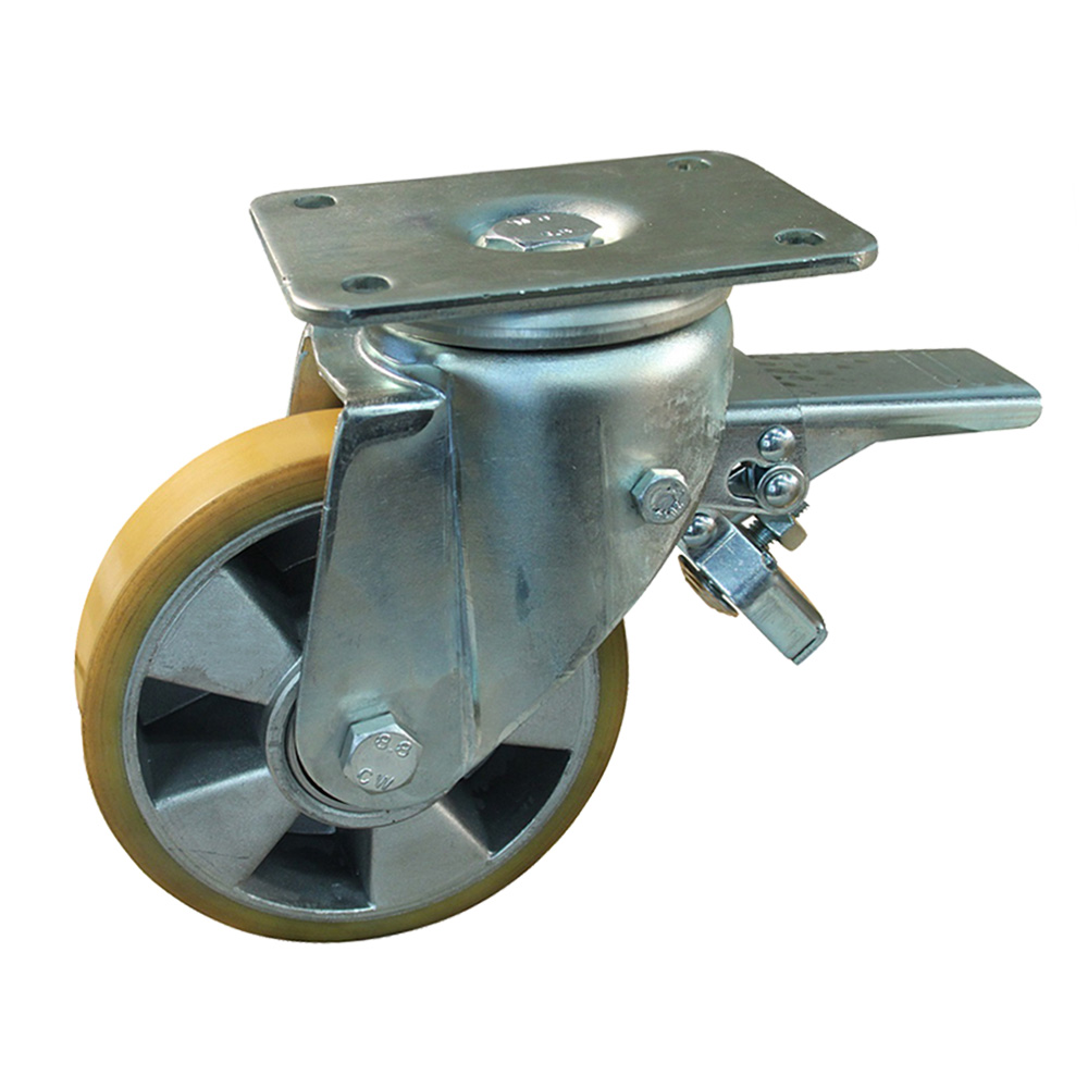 Heavy-duty swivel castor with brake - PU tyre on aluminium rim