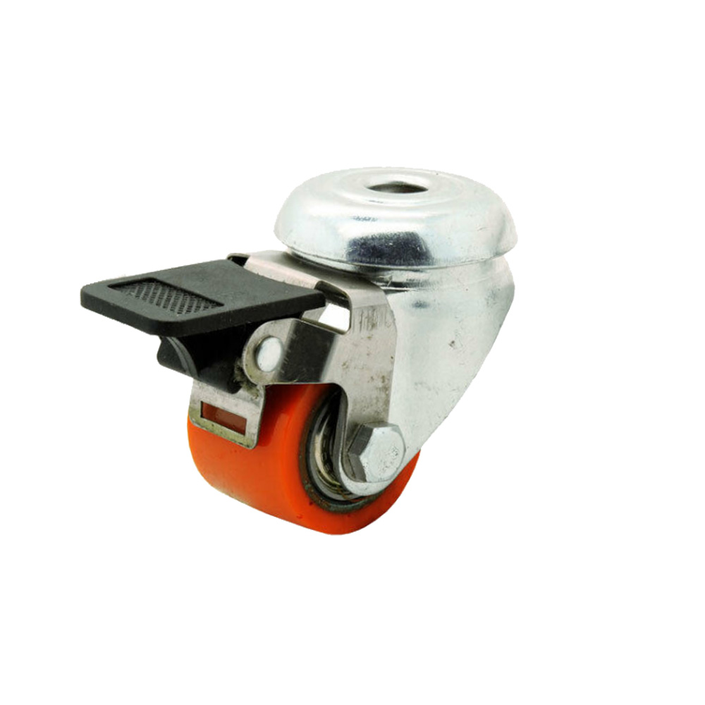Apparatus swivel castor with brake Ø50mm orange PU tire - bolt hole mount