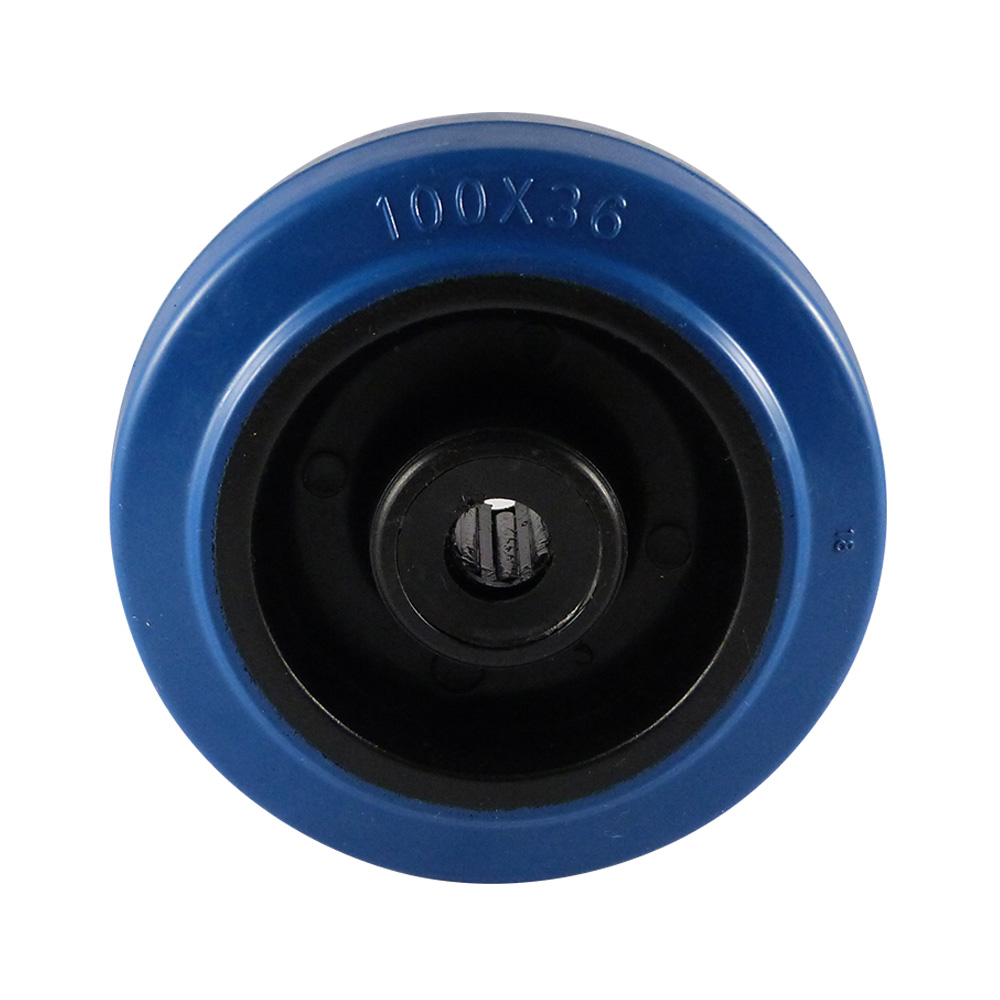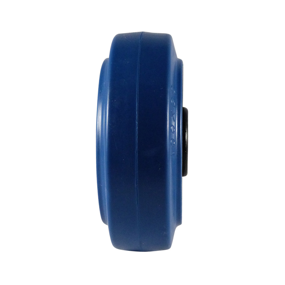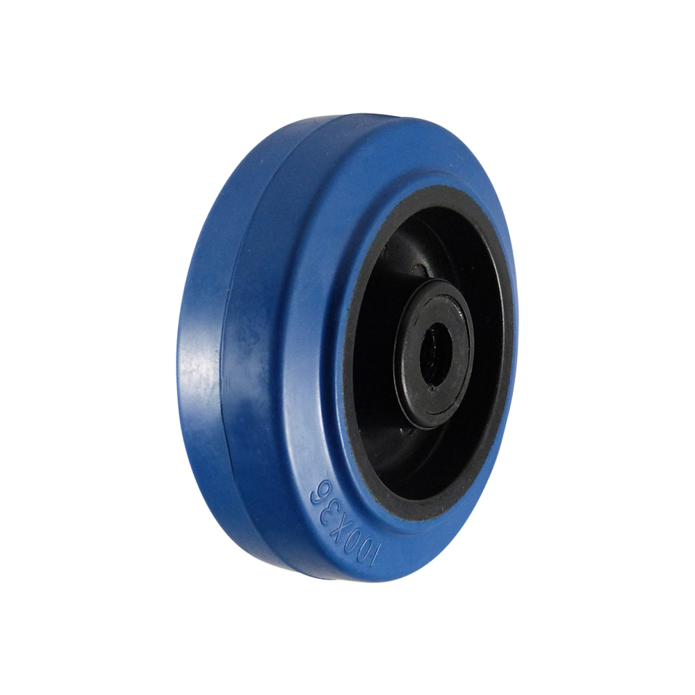 - The moulded and vulcanised blue rubber tyre (70° Shore A ±3°) is shock-absorbent, impact-resistant and does not mark the floor (non-marking)