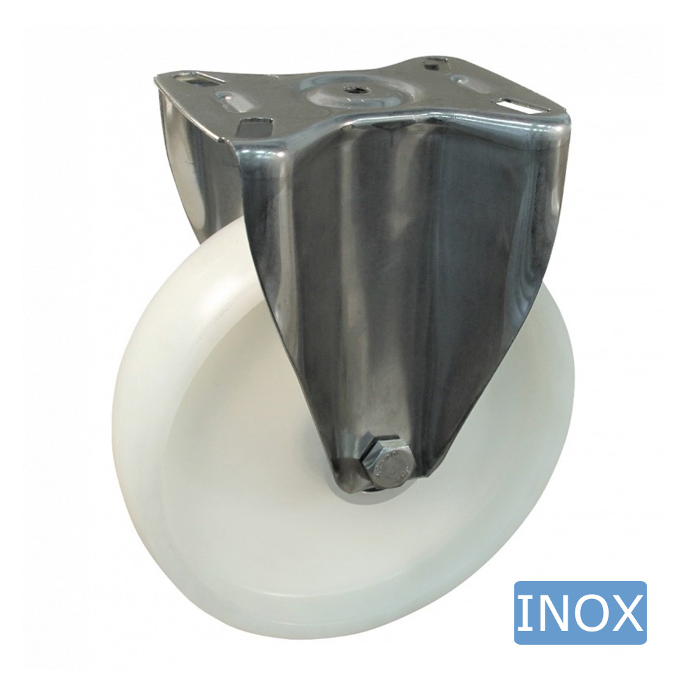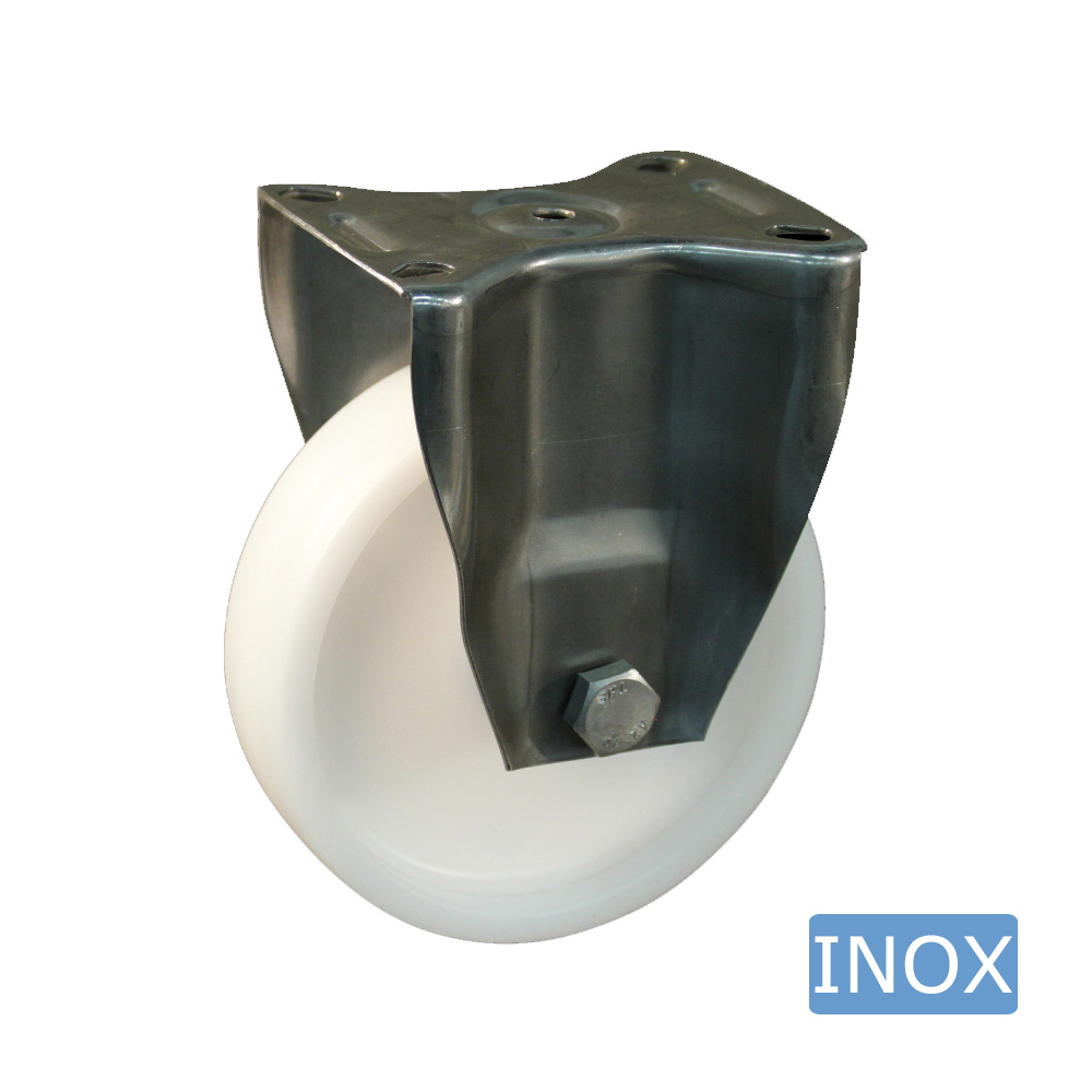 Stainless steel fixed castor – mounting plate - polyamide wheel