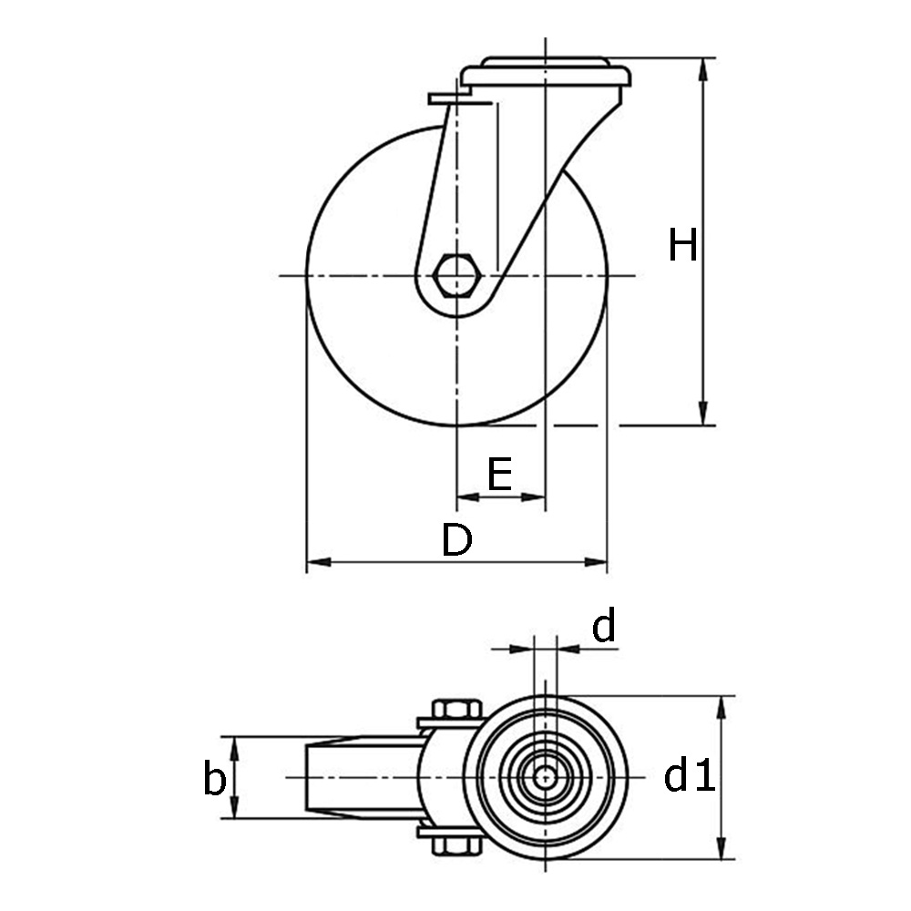 Swivel castors with a plastic wheel are available in a range of sizes from Ø80mm to Ø250mm inclusive