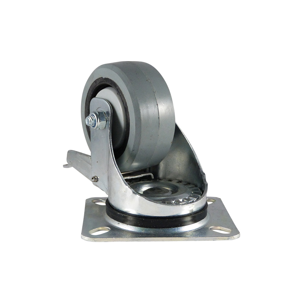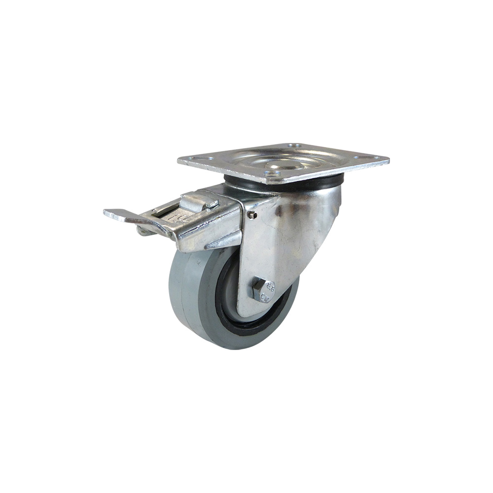 Swivel castor with brake – centre mounting hole - elastic rubber tyre