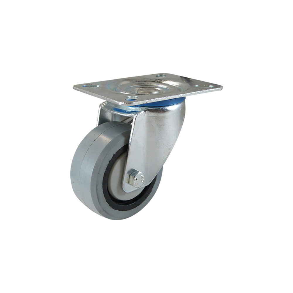 - Swivel castors with an elastic rubber tyre on a plastic rim are available in wheel diameters from Ø80mm to Ø200mm inclusive
