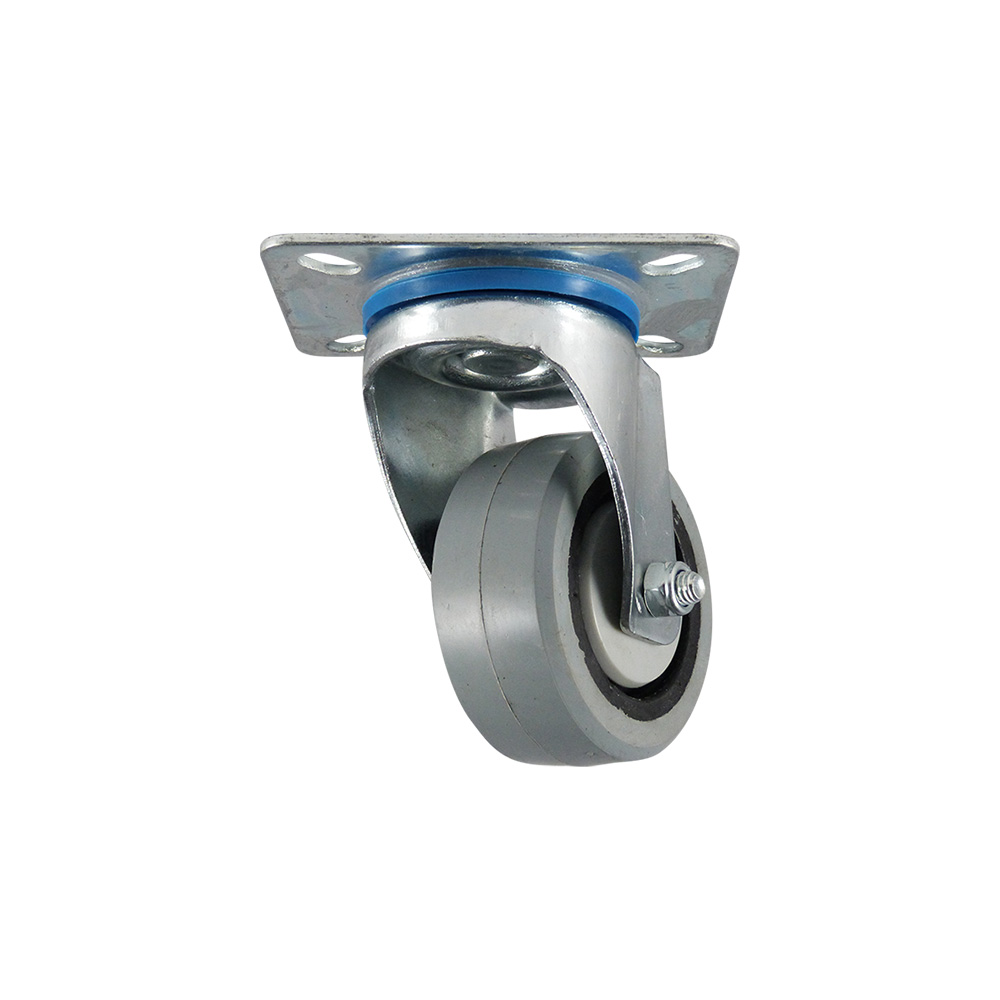 Swivel castor - mounting plate - elastic rubber tyre on plastic rim